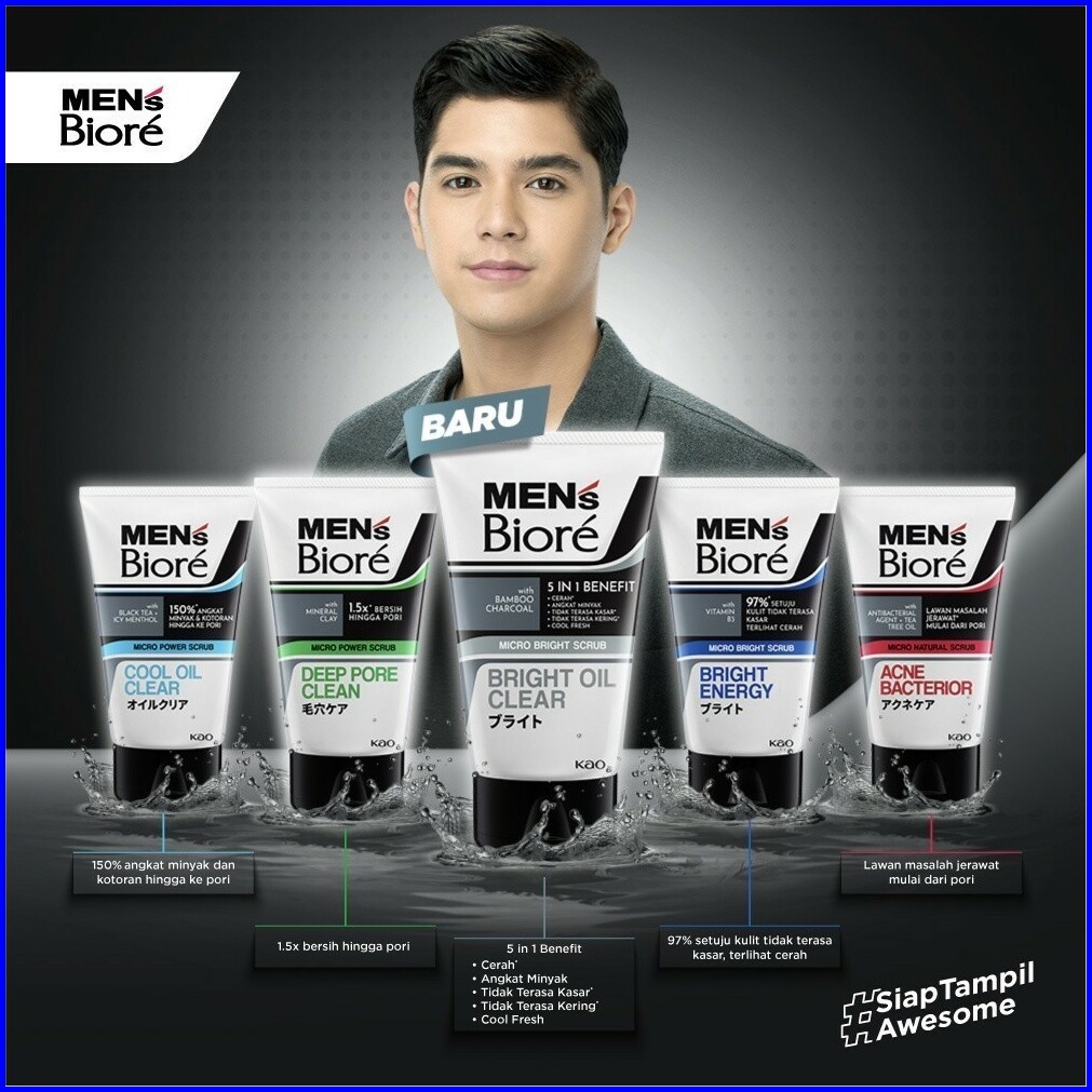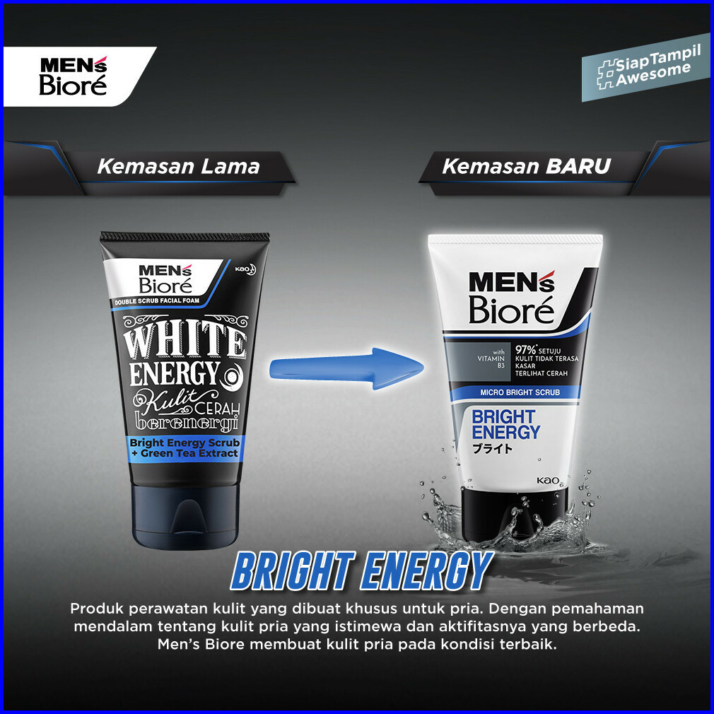 Men S Biore Micro Scrub Sabun Muka Pria Untuk Kulit Kusam Bright Energy Eksfoliasi 100 Gr - Facial Wash