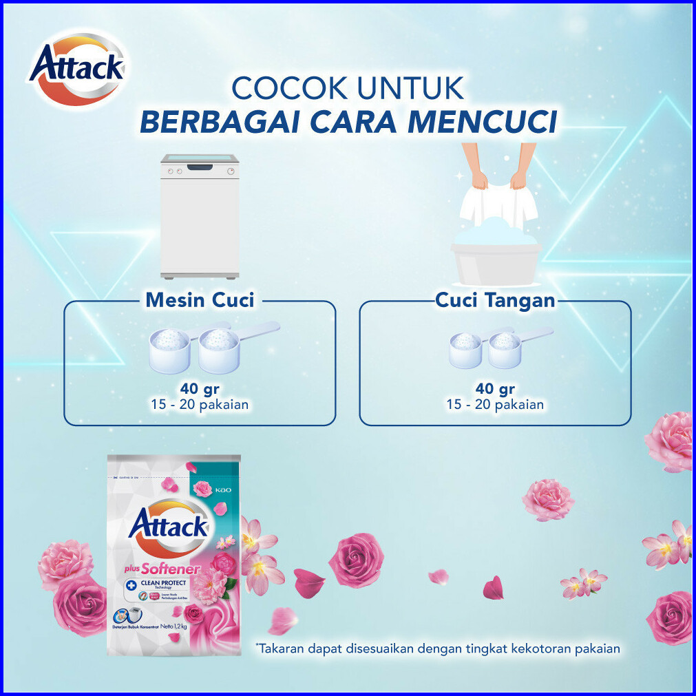 Attack Plus Softener Deterjen Bubuk Mesin Cuci Top Loading 1200 Gr Triple Pack