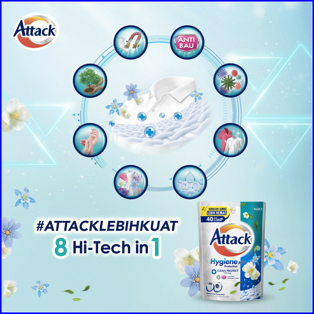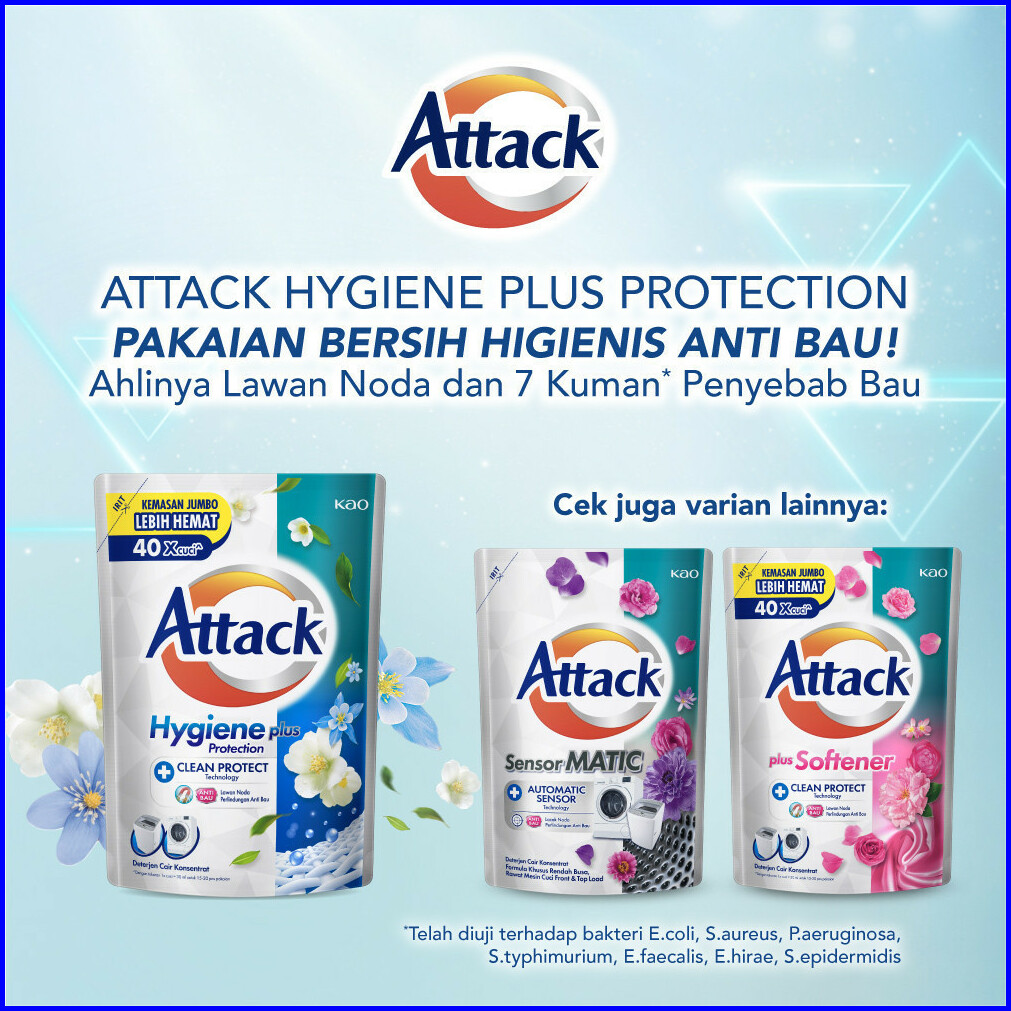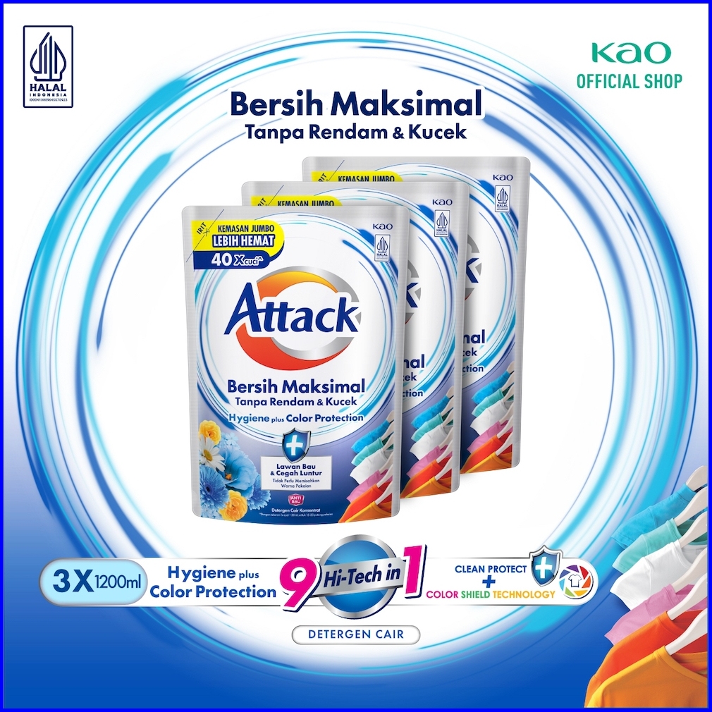 Attack Hygiene Plus Deterjen Cair Semua Mesin Cuci 1200 Ml Triple Pack