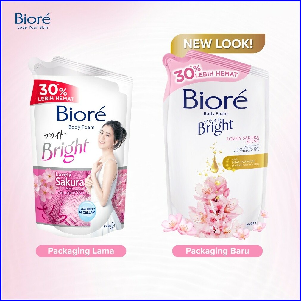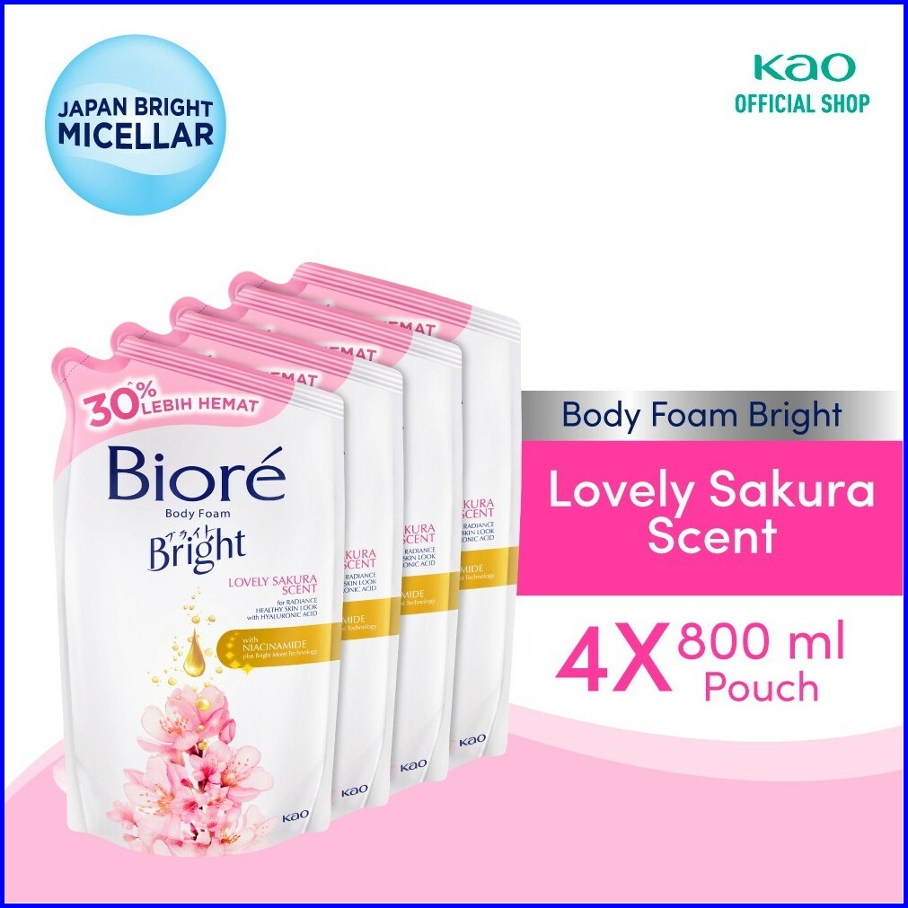 Biore Bright Sabun Mandi Cair Body Foam Lovely Sakura Pouch 800 Ml Four Pack