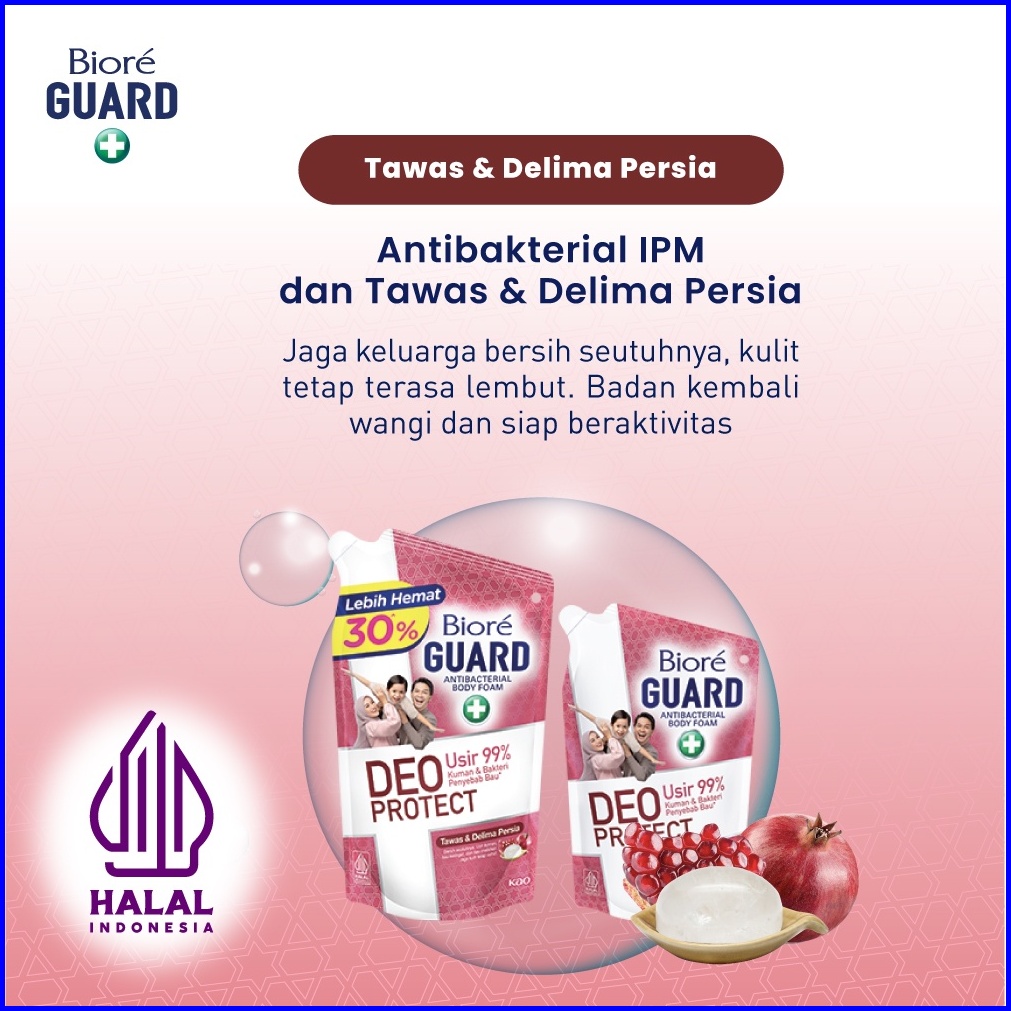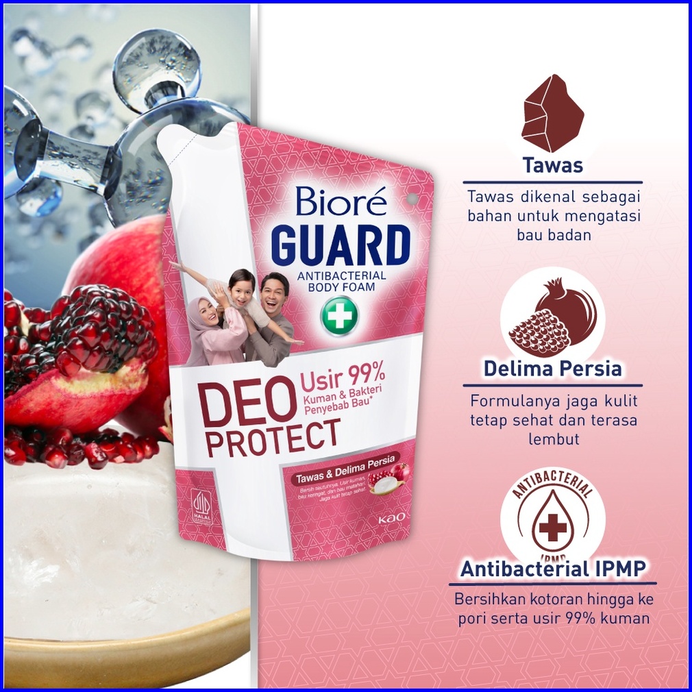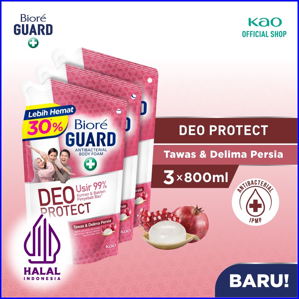 Biore Guard Deo Protect Sabun Mandi Cair Anti Bakteri Halal Tawas Delima Persia Pouch 800ml Triple Pack