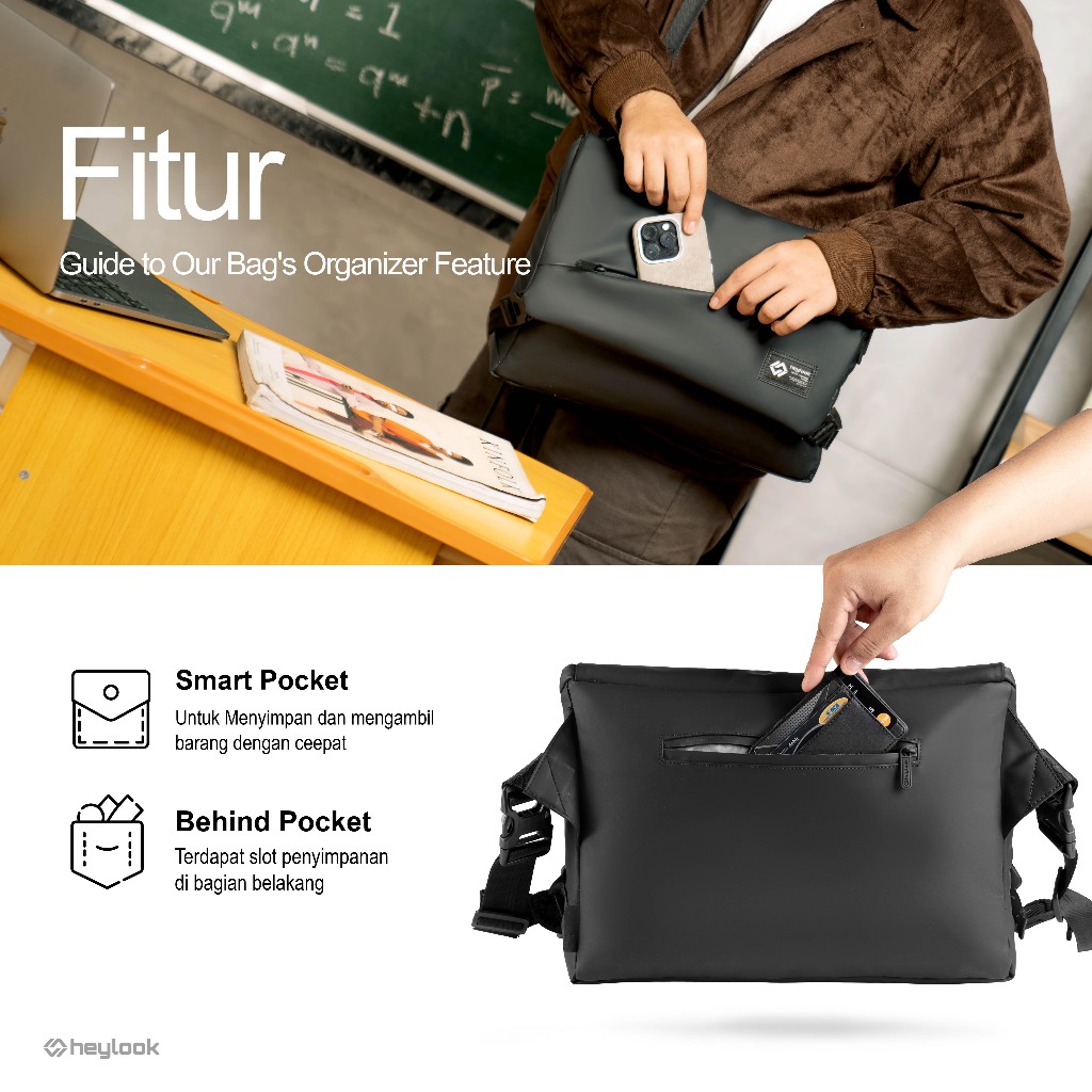 Tas Selempang Pria Waist Bag Water Resist Shoulder Waterproof