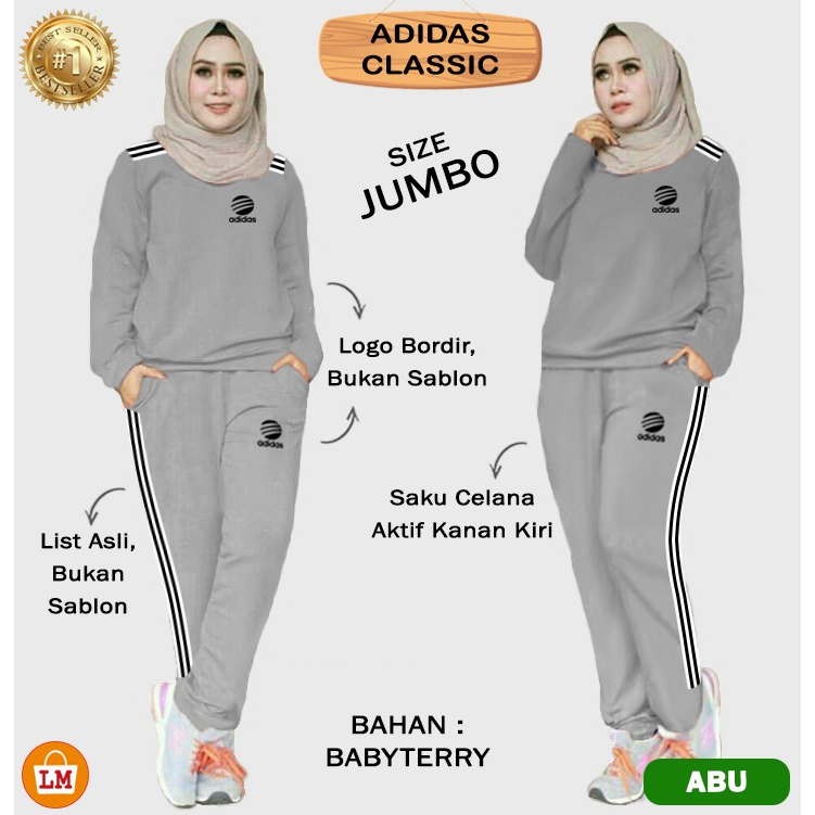 Setelan Kaos Olahraga Senam ADDS CLASSIC Babyterry Training Wanita Babyterry Big Size Oversize Jumbo XL - XXXL / 18