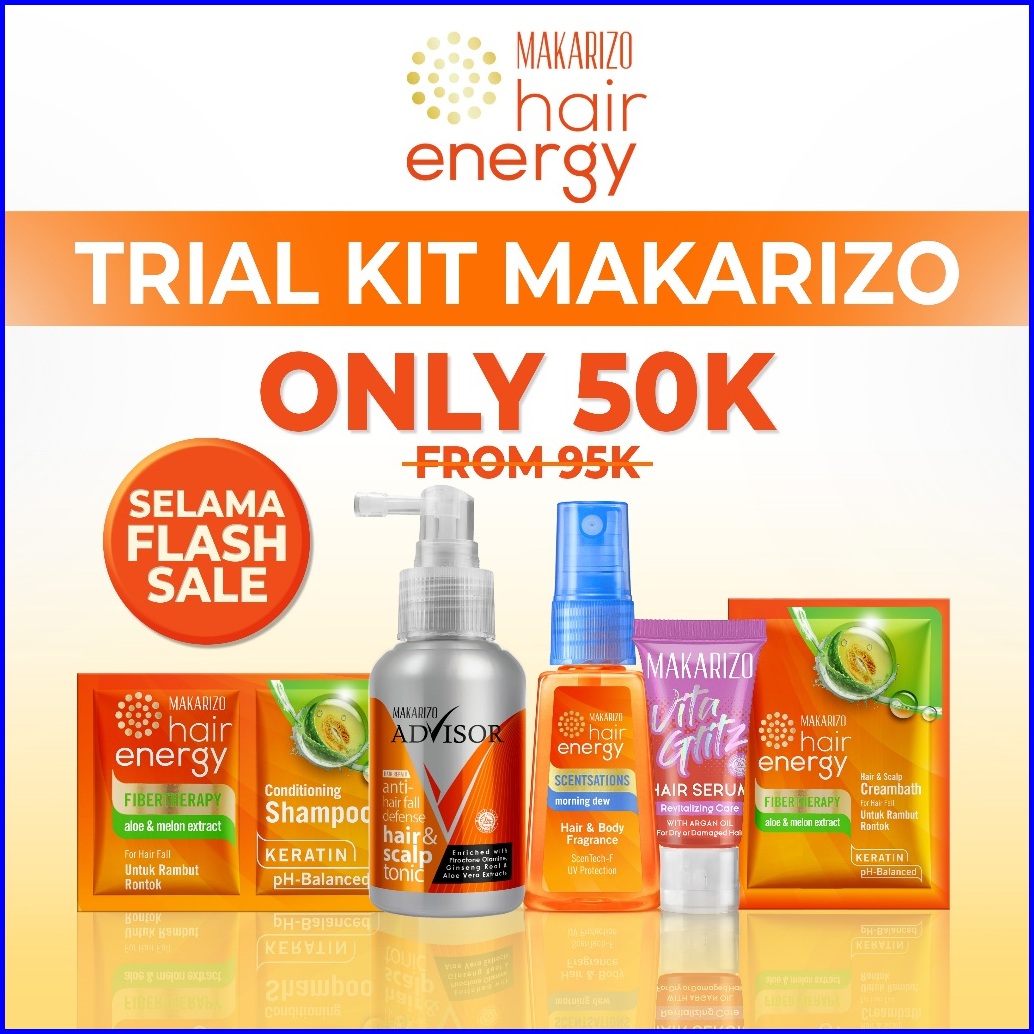 Makarizo Trial Kit - Shampoo Aloe Melon 9ml Creambath Aloe Melon 60ml Scentsations Morning Dew 30ml Vitaglitz Revitalizi