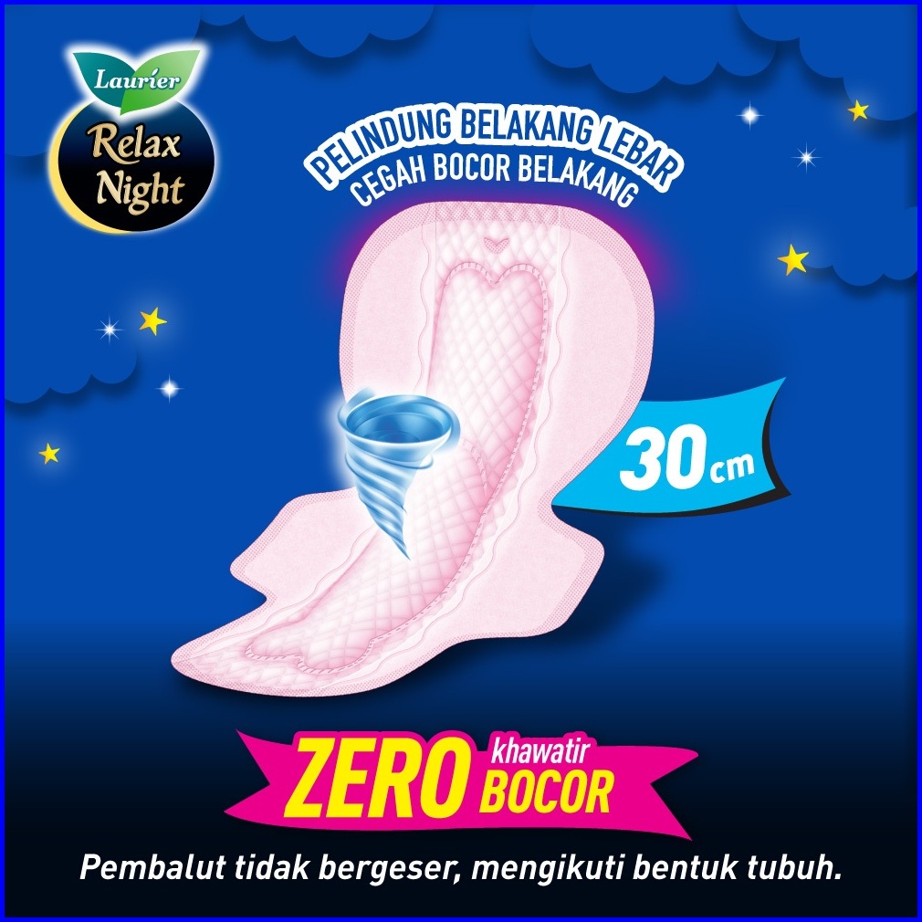 Laurier Relax Night Pembalut Wanita Untuk Bebas Aktivitas Di Hari Deras 30cm Wing Zero Khawatir Bocor Sepanjang Malam Is