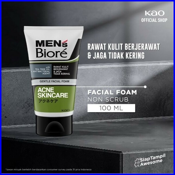 Men S Biore Non Scrub Sabun Muka Pria Untuk Kulit Berjerawat Acne Skincare Tea Tree Oil 100 Gr - Facial Wash Twin Pack