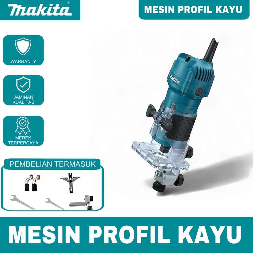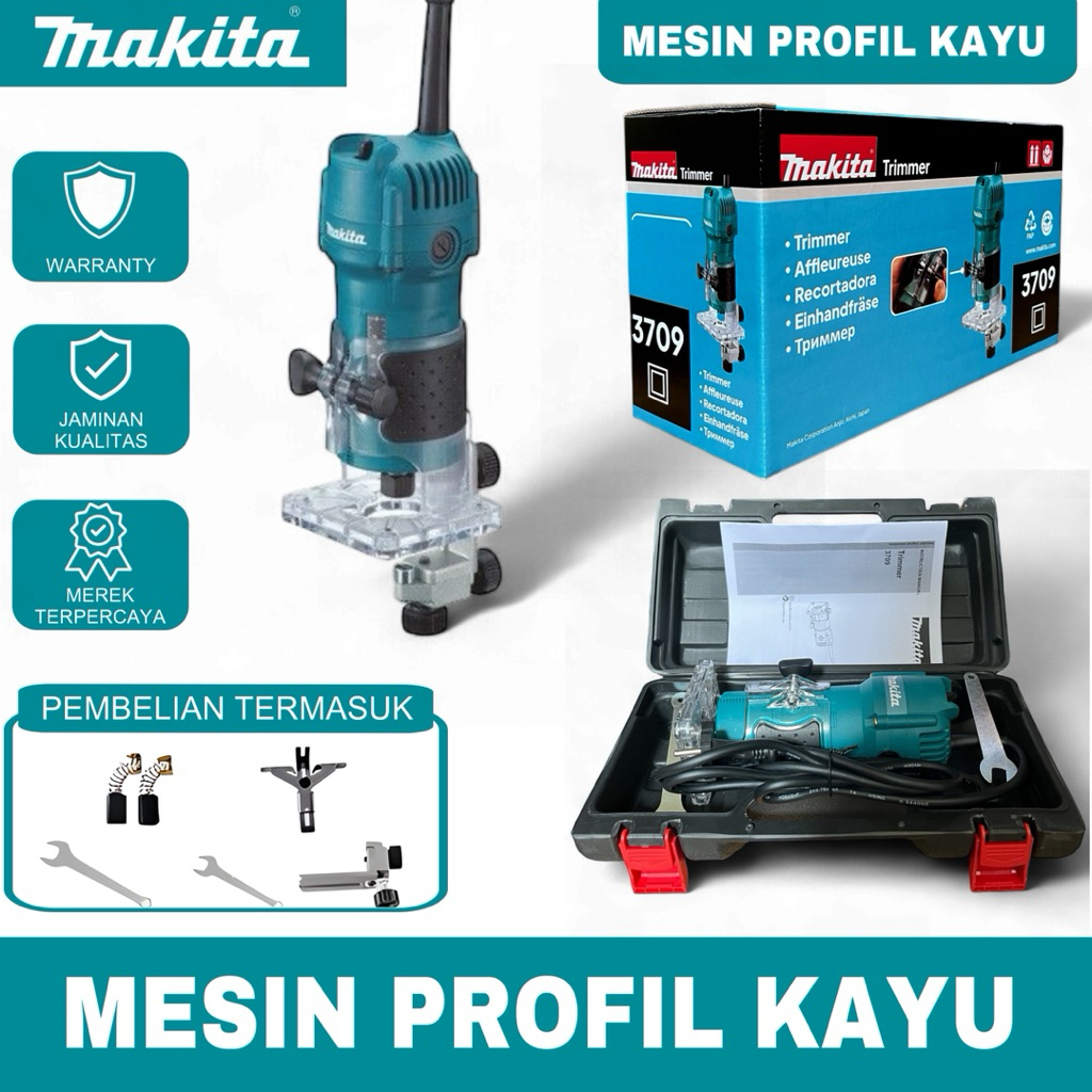 Makita Trimmer 3709 Mesin Profil Kayu 6mm Presisi Halus Terbaik Murah (Bonus Koper)