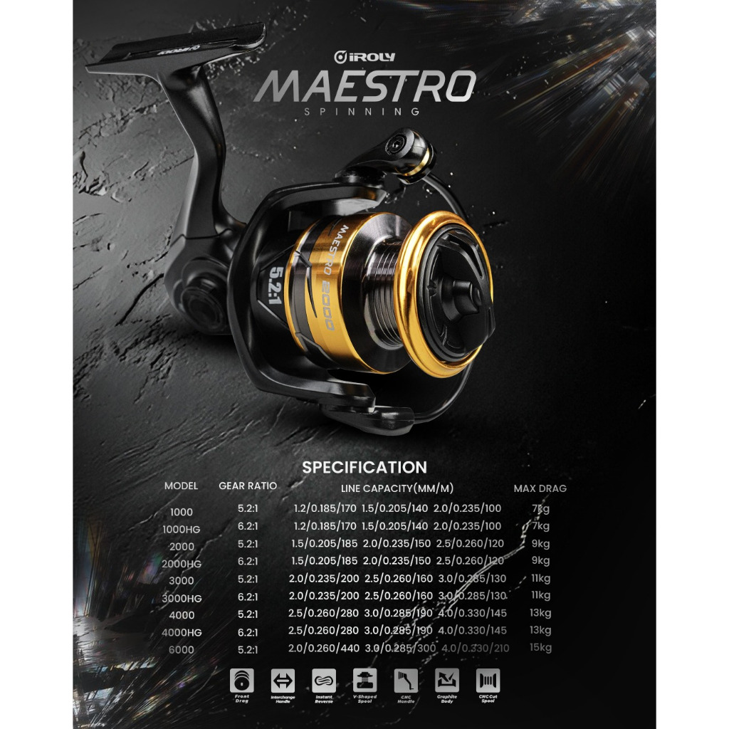 Reel Iroly Maestro 1000/2000/3000/4000HG -Reel Spinning Power Handle