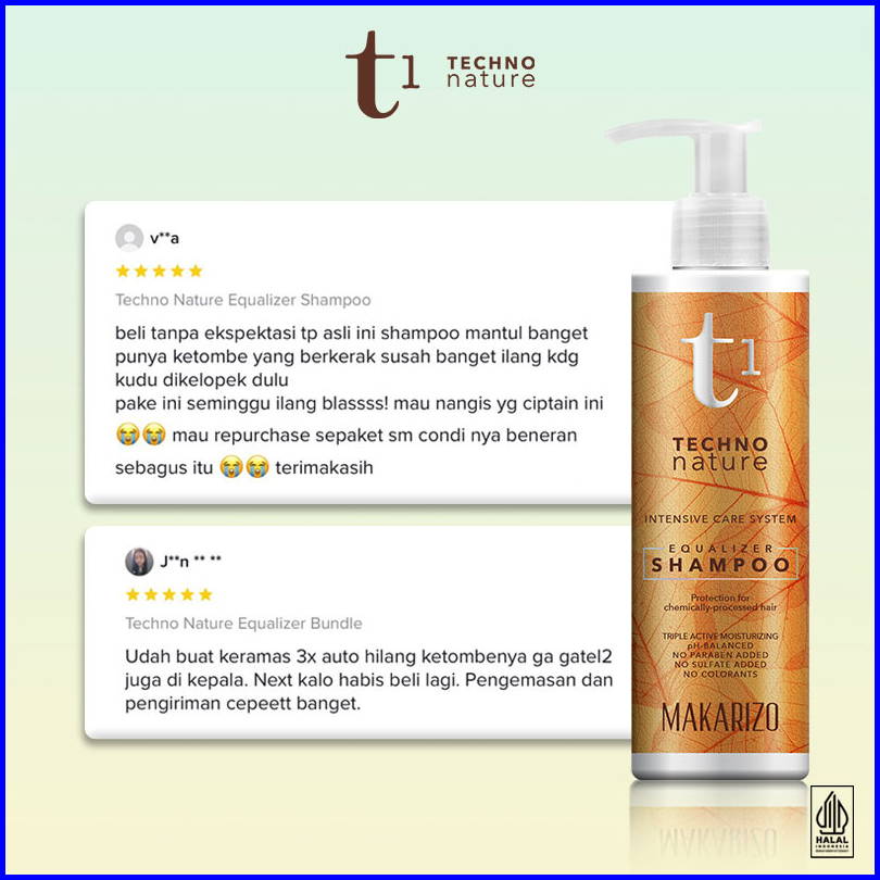 Paket Isi 2 Makarizo T1 Techno Nature Equalizer Shampoo Conditioner 180 Ml - Shampo Conditioner Non Sls
