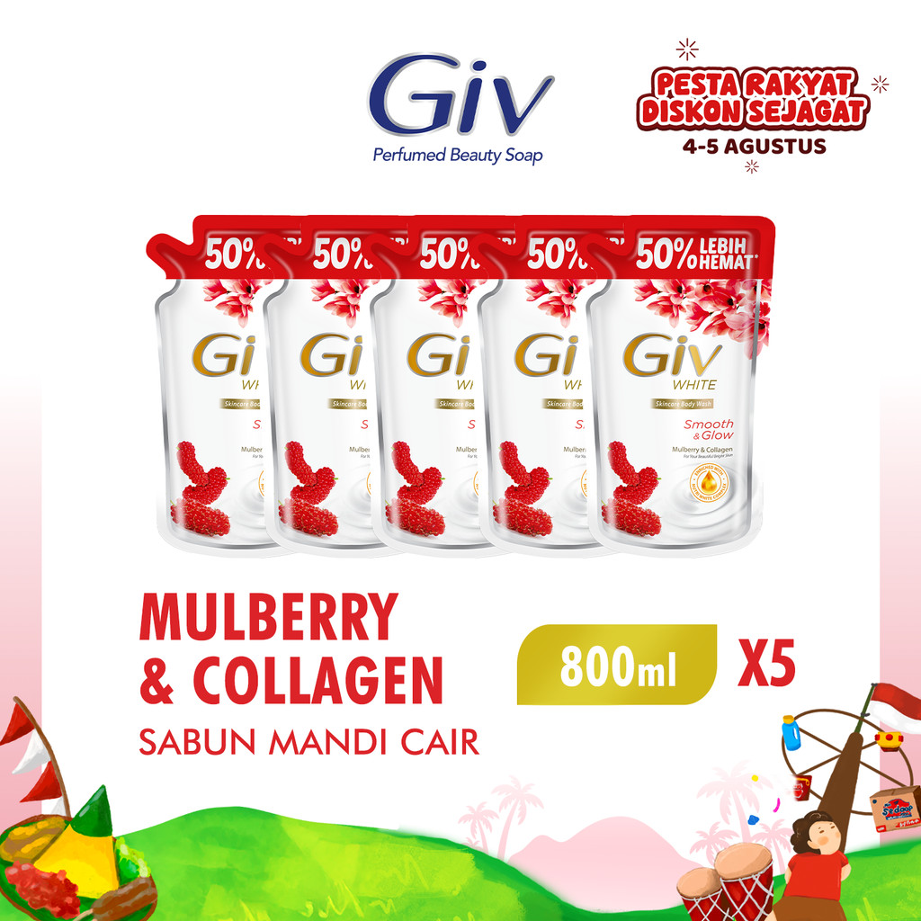 Giv White Sabun Mandi Cair Mulberry Pouch 800 ml x5