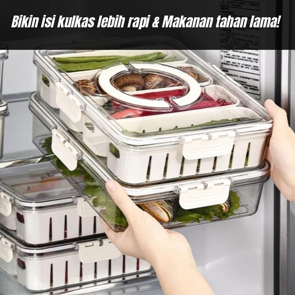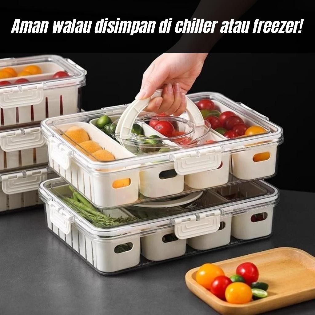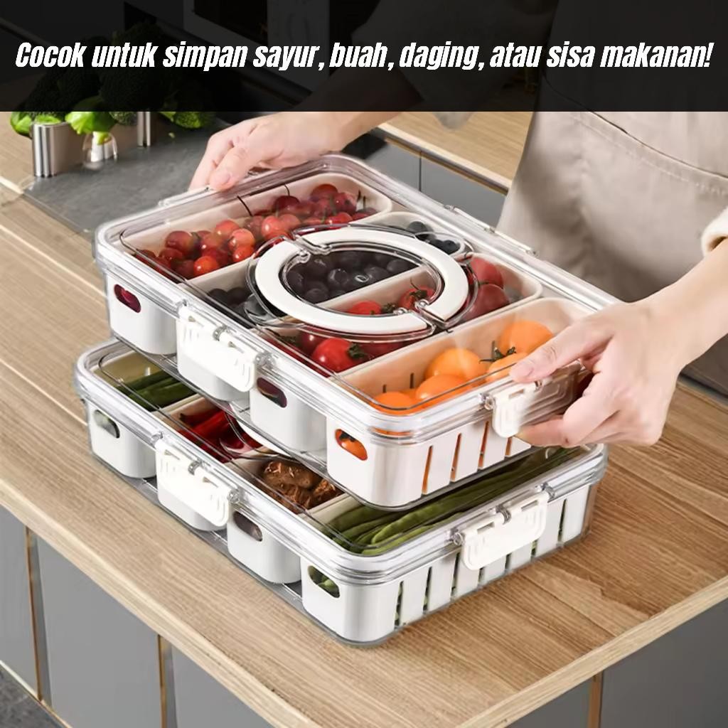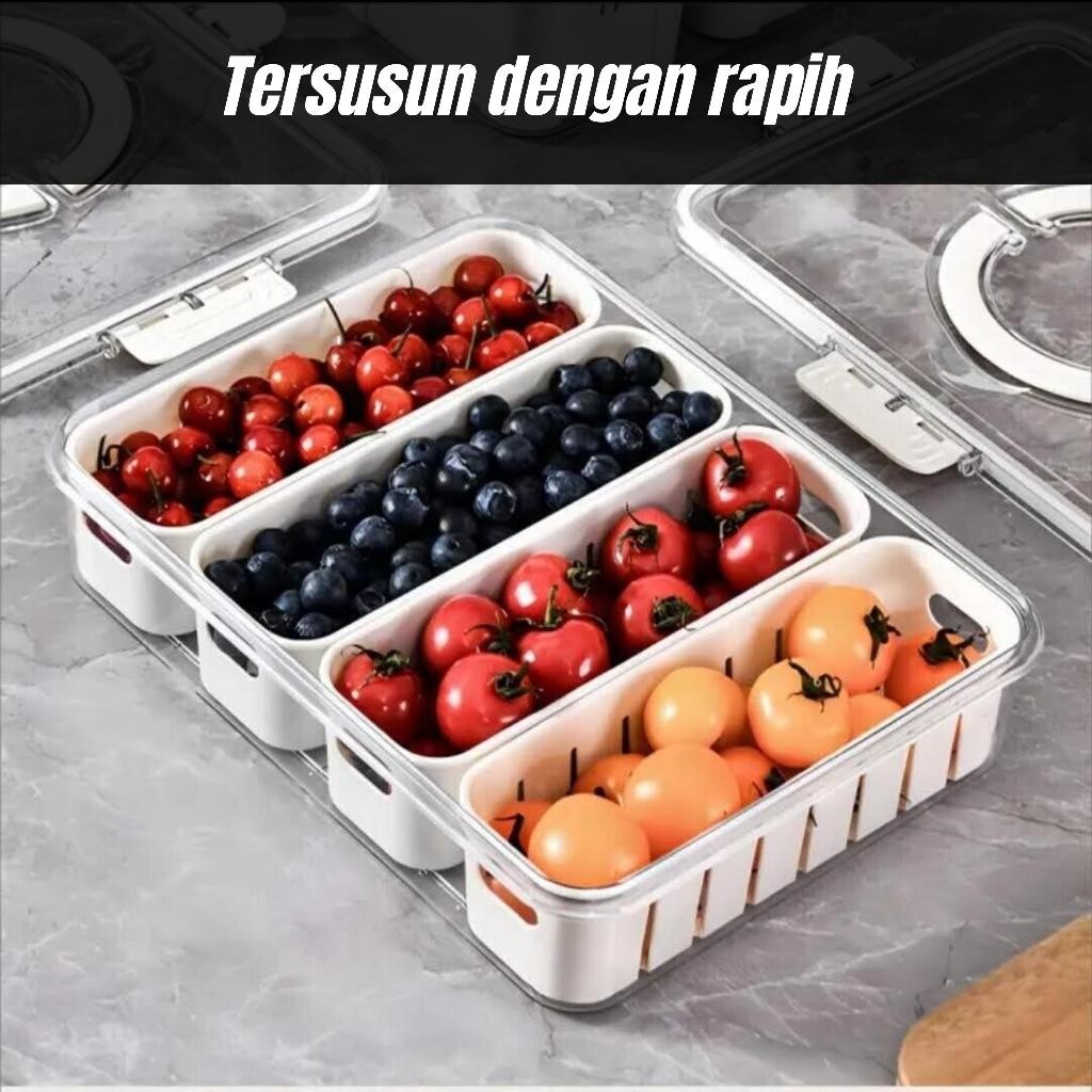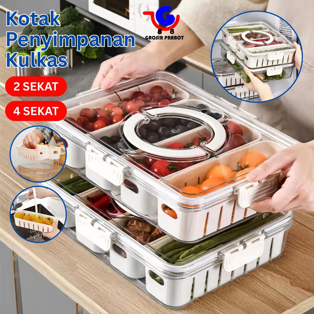 Kontainer Kulkas Kotak Penyimpanan Makanan Sayuran Segar Food Prep 2 4 Sekat Transparan Kedap Udara