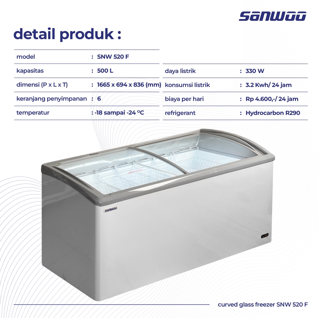 Freezer Sanwoo Sliding Curved SNW 520F / Freezer Kaca 500 Liter
