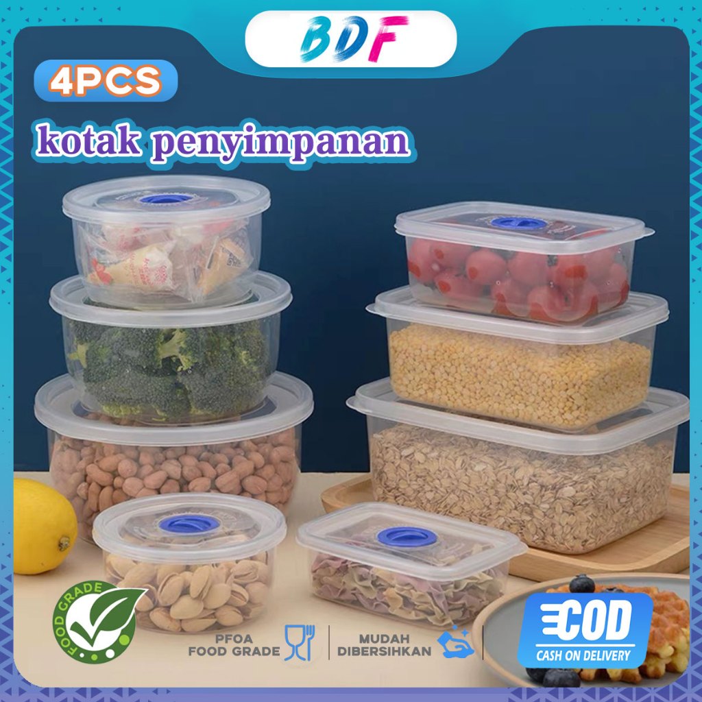 【】BDF 4pcs Toples plastik bening Food crisper Kulkas Penyimpanan Crisper Kulkas Kotak Penerimaan Sayuran Buah