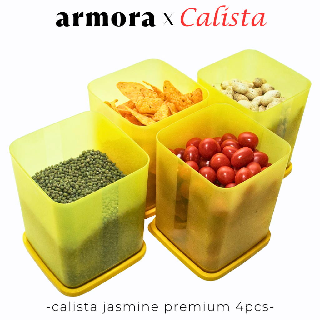 Toples Plastik Calista Jasmine 4Pcs Tempat Bumbu Food Container Tempat Penyimpanan Makanan Kulkas Set