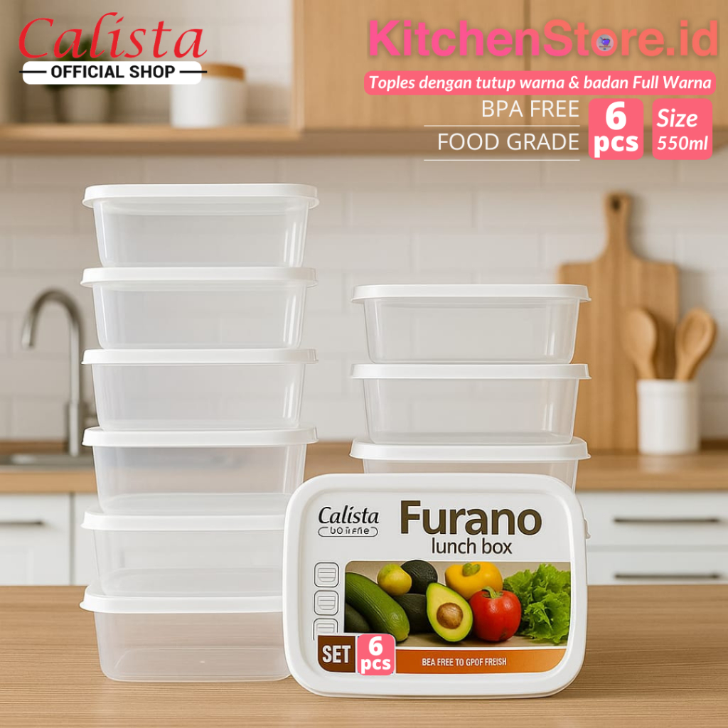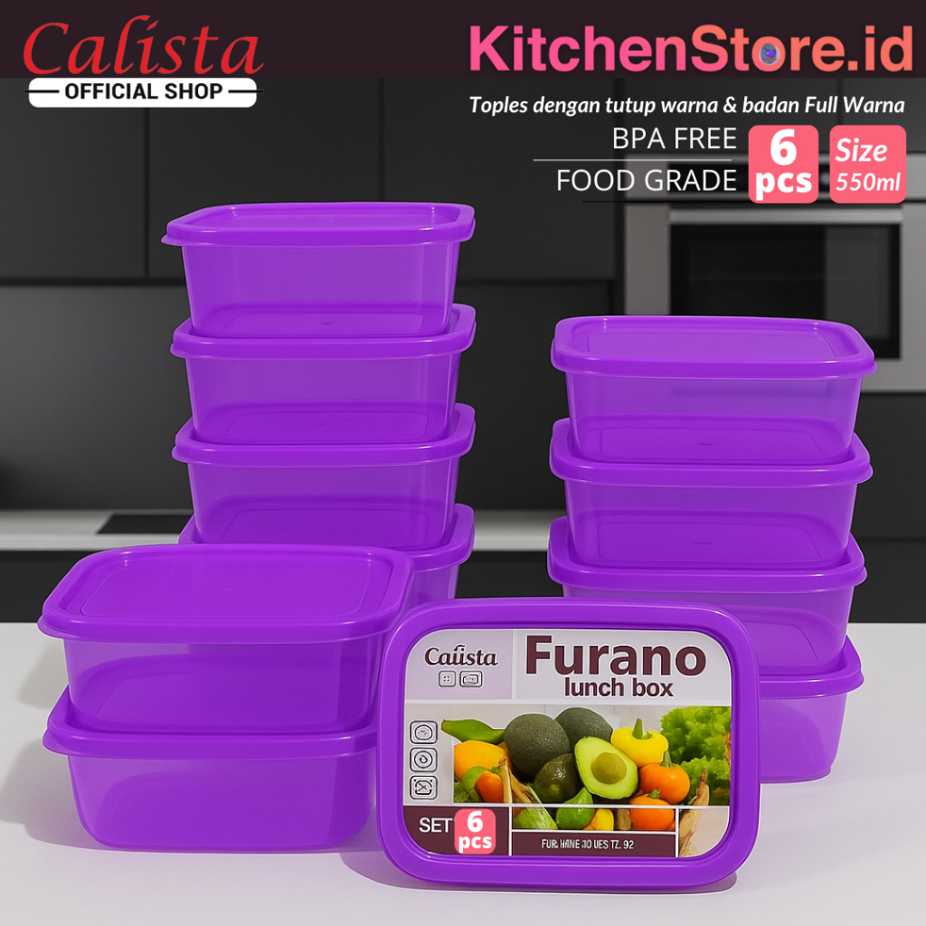 Lunch Box Calista Furano Full Warna 550ml Set 6 pcs Toples Sealware Food Container Kotak Makan Kedap Udara otak makan pe