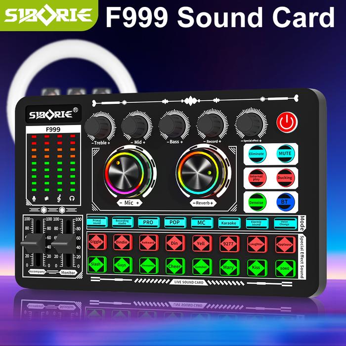 Siborie【c06】F999 Soundcard Audio USB External Sound Card mic Mixer Bluetooth phone PC - F999