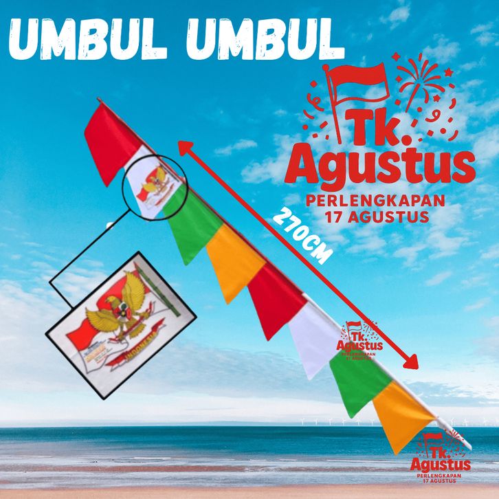 3pcs Bendera Umbul Umbul Garuda / Bendera Merah Putih Zig Zag 17 Agustus