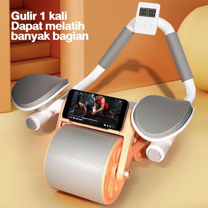 ME Ab Wheel Ab Roller Wheels Plank Trainer 2in1 Abdominal Core Roller Automatic Rebound Olahraga Push Up Gym Fitness