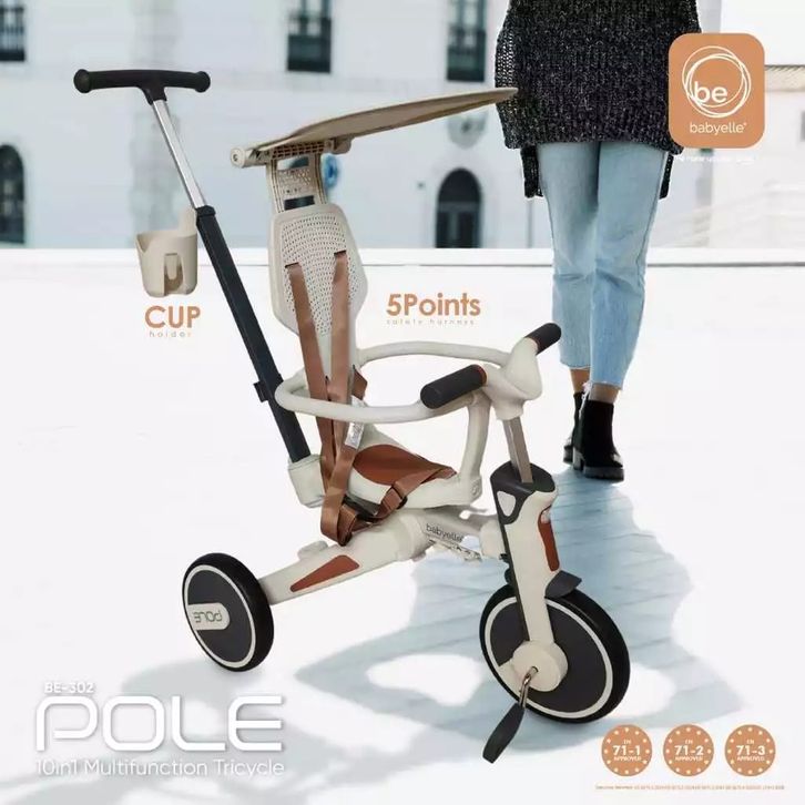 BabyElle POLE 10 IN 1 Multifunction Tricycle BE-302 / Sepeda Dorongan Anak