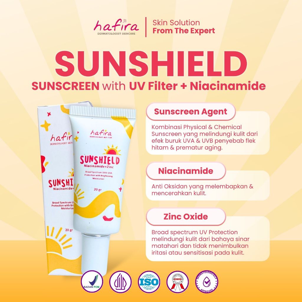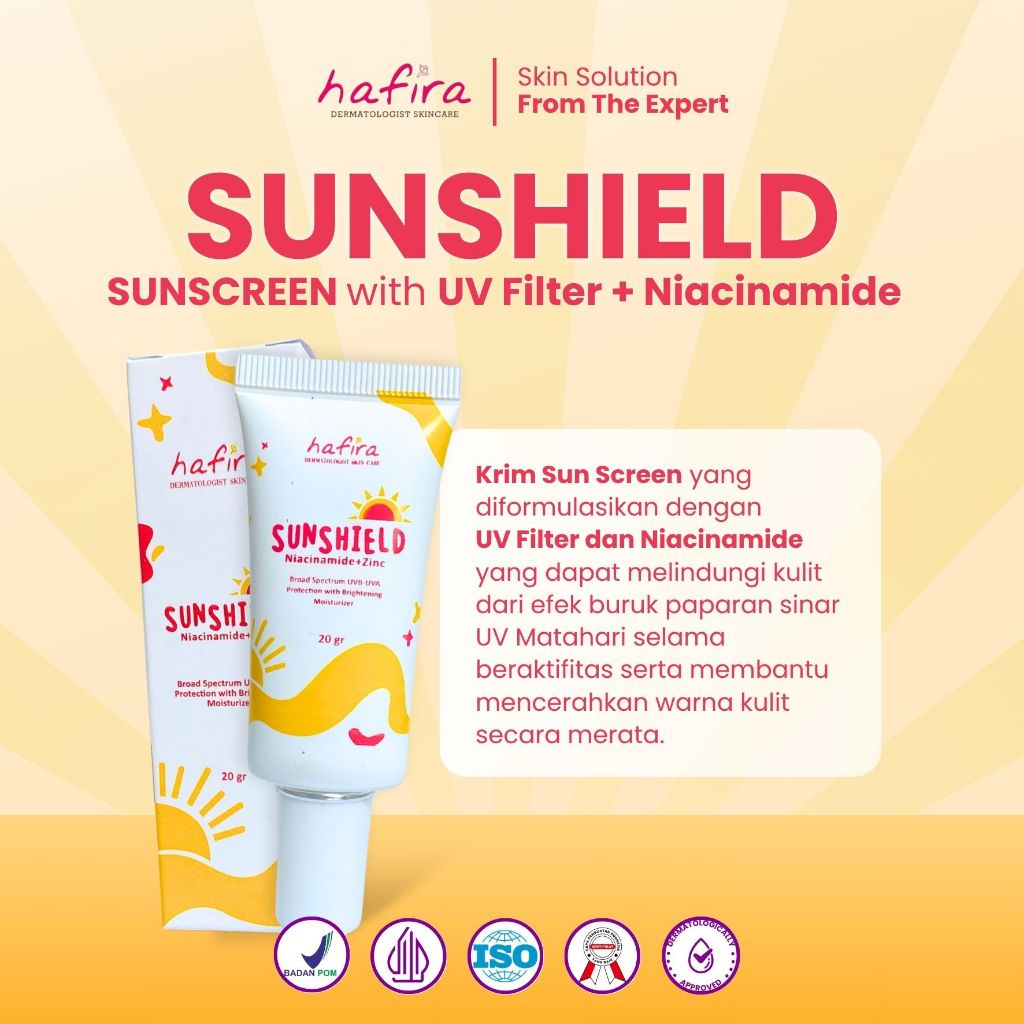 HAFIRA Sunshield Sunscreen Niacinamide Zinc Broad Spectrum UV A UV B Protection With Brightening Moisturizer Basic Skinc