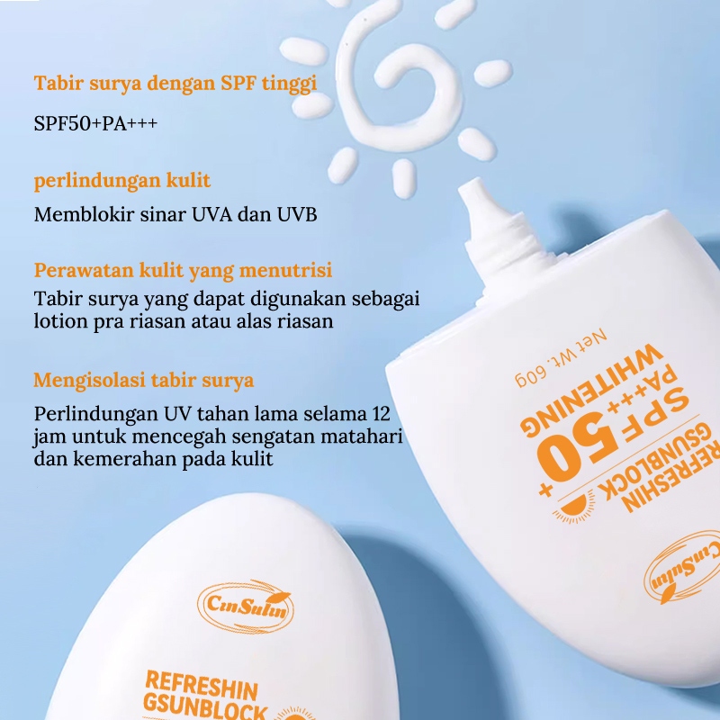 Pencegahan UV CinSulin SPF50+ Sunscreen Cream Wajah Tahan PA+++ Sunblock Wajah dan Badan Tabir Surya Pelembab Dan Pelind