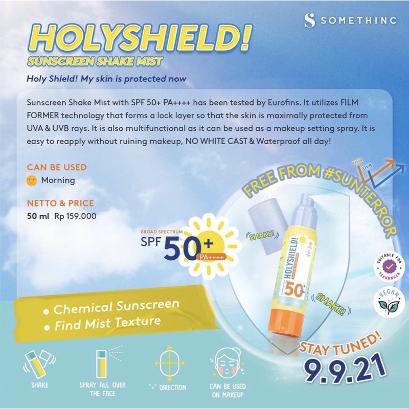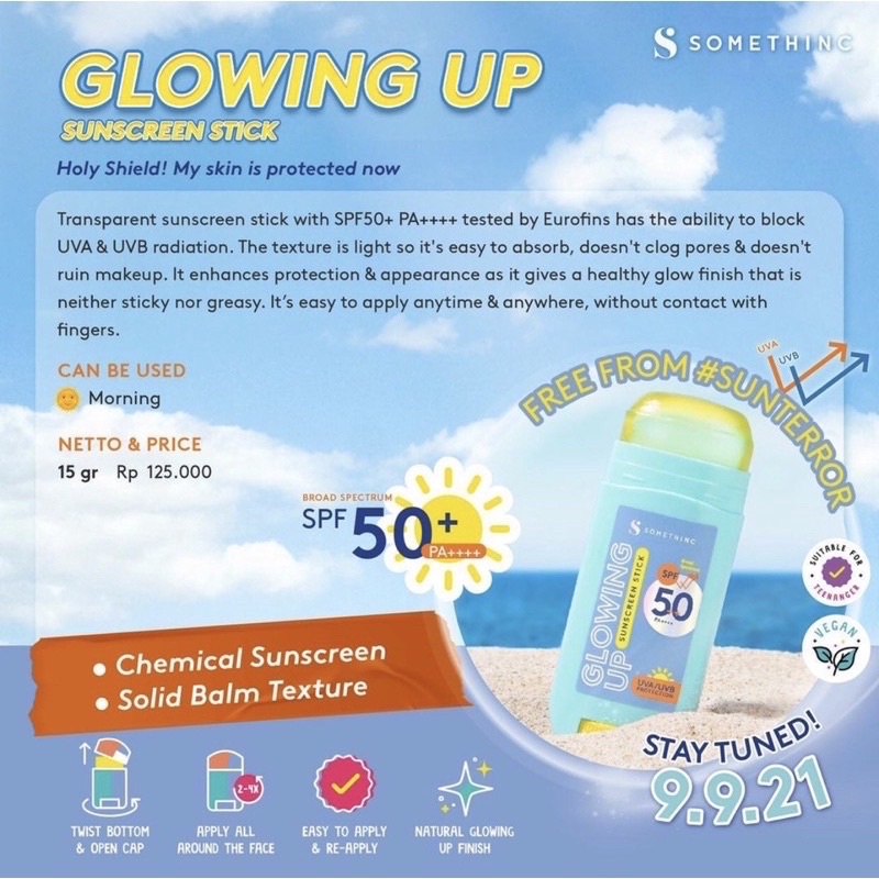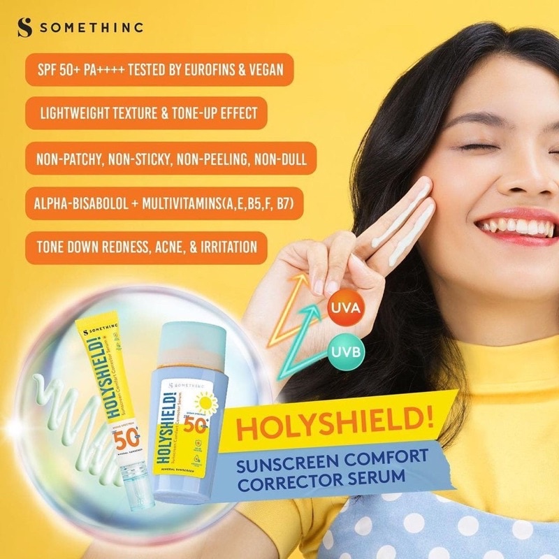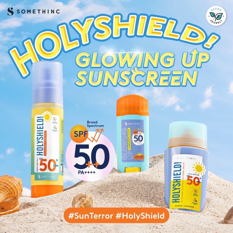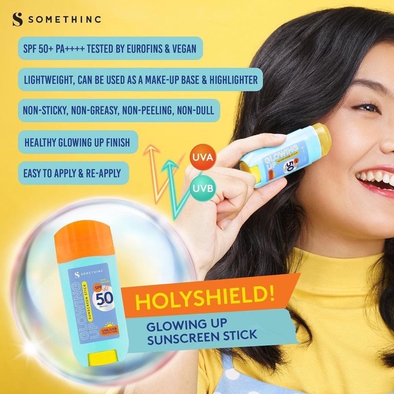 SOMETHINC SUNSCREEN Holyshield Comfort Corrector Serum SPF 50 PA++++ 15ml 50ml | Glowing Up Sunscreen Stick Glow 15g | S