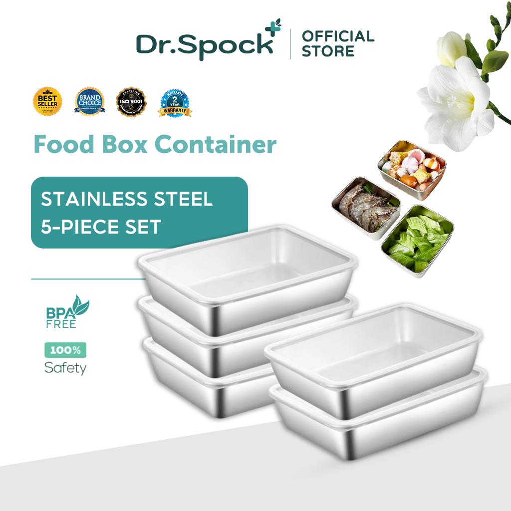 Dr.Spock Food Box Stainless Steel 5PCS SET Wadah Makanan Multifungsi Serbaa Food Grade Wadah Penyimpanan GP01