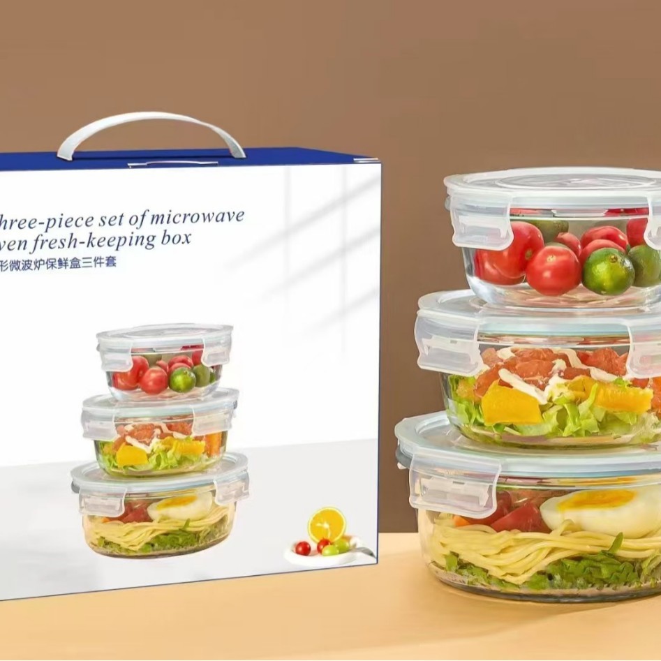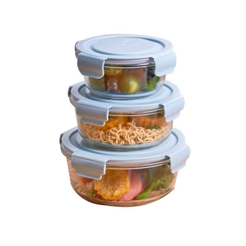 Set Wadah Makanan Kaca 3 Susun Borosilikat | Kotak Bekal Mewah Microwave Freezer Aman | Tempat Makan Kulkas Food Contain