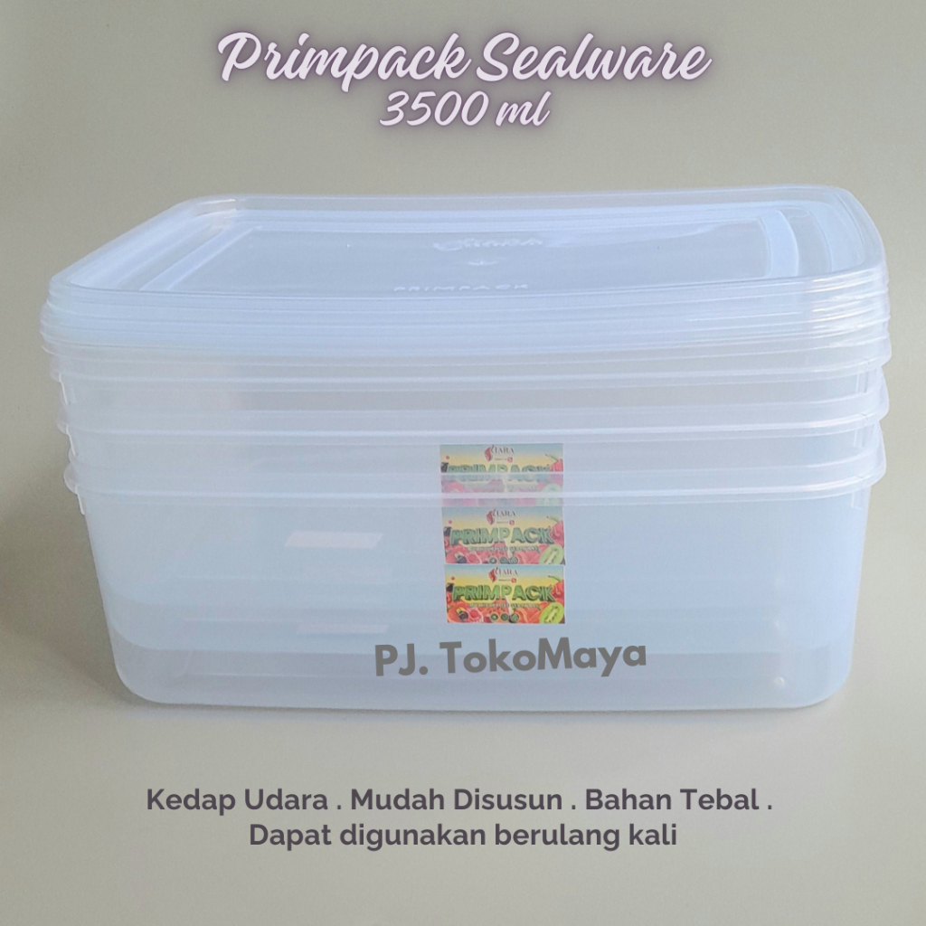 Primpack Set Bening 3500ml Wadah Penyimpanan Makanan Kulkas 3.5L BPA Free Bahan Kuat Bening Serba a Sealware Food Contai