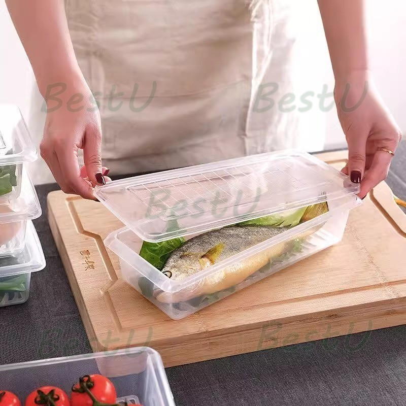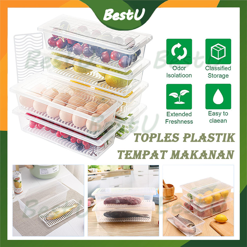 Tjang Serbaa Food Grade Wadah /Kontainer Kulkas Makanan dengan/Kontainer kulkas makanan dengan saringan