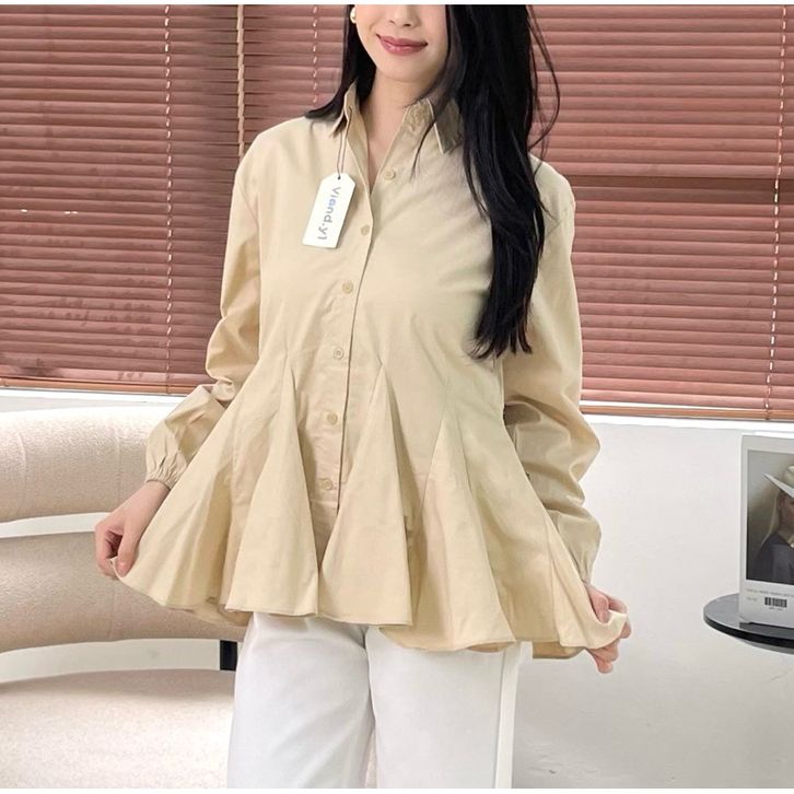 BLOUSE POPLIN WANITA KOREA STYLE ATASAN KEMEJA RUFFLE BAJU ATASAN WANITA TERBARU