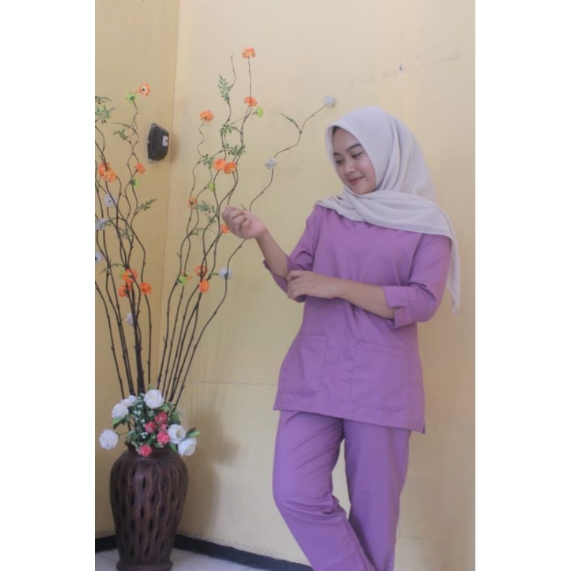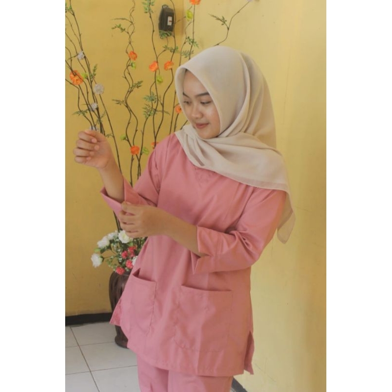 Baju Ok OKA Lengan 7/8 One set Dokter Jaga Perawat Nakes Pakaian Kerja Bidan Dokter Baju Jaga Bahan Toyobo Premium