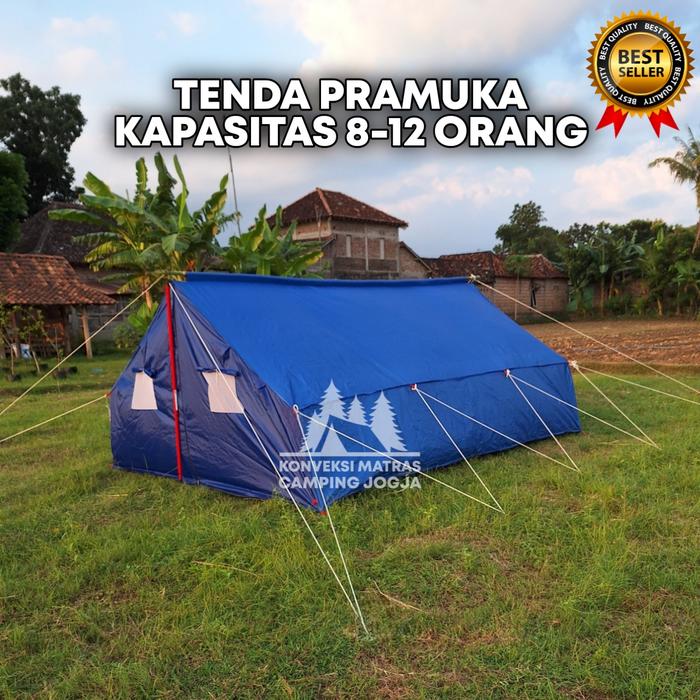 Tenda Pramuka Kap 8-12 Orang Tenda Camping Outdoor - Abu Kombinasi Merah