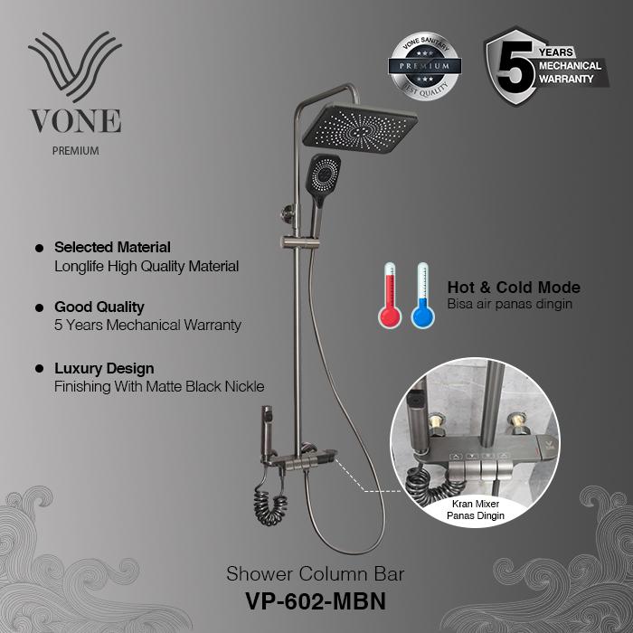 VONE Shower Tiang Rain Kamar Mandi Full Set Mixer Panas Dingin Stainless VP-602-MBN ( VONE PREMIUM )