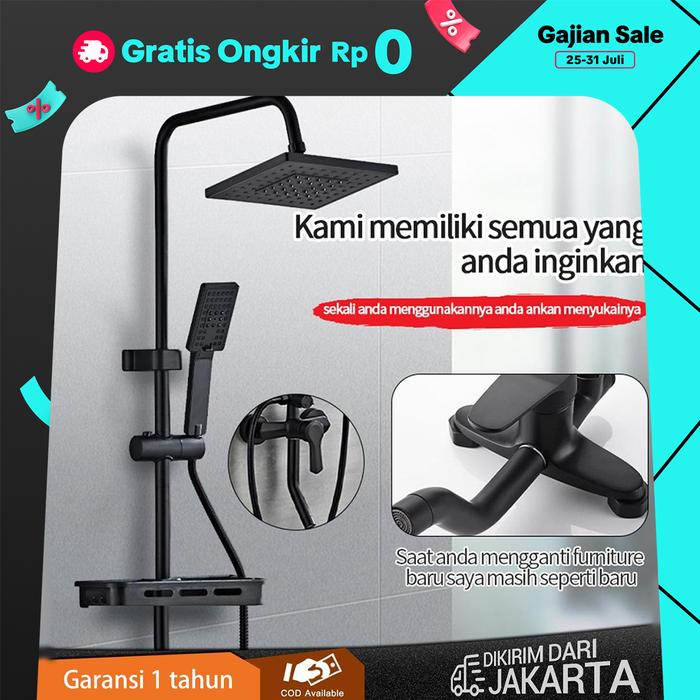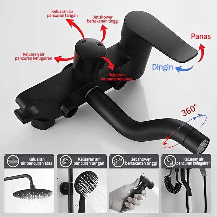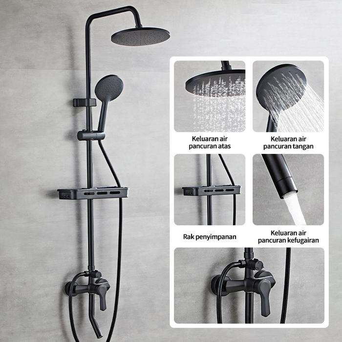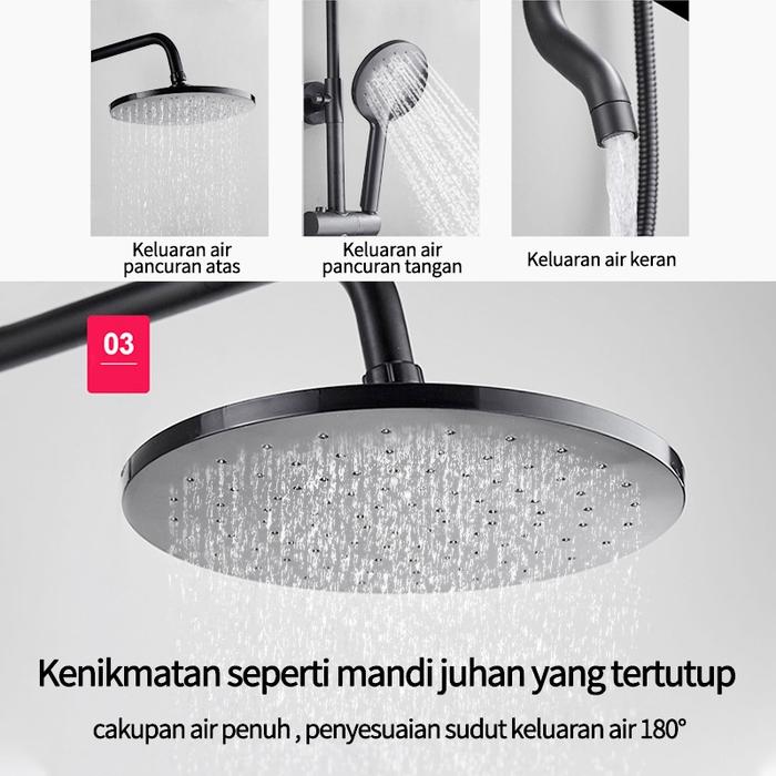 Set shower panas dingin persegi/ shower kamar mandi/ set shower kamar 3in1 dengan keran Air Hitam - 3 in 1 (bulat)