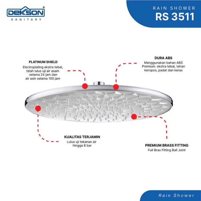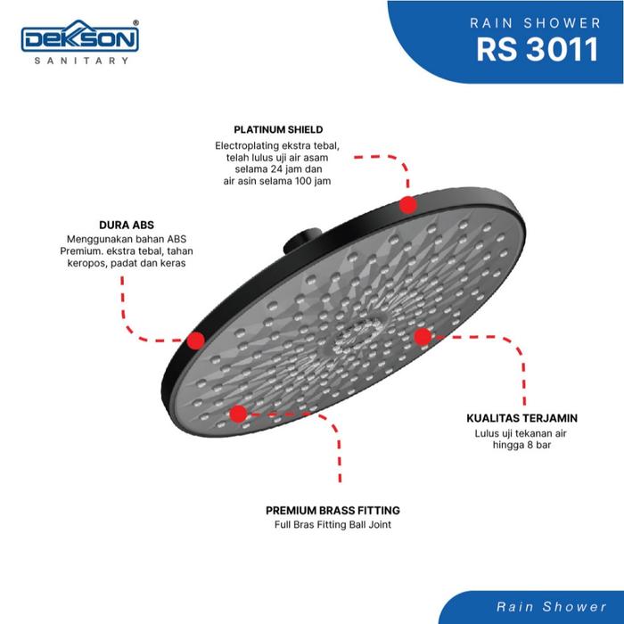 Dekkson Rain Shower Mandi Atas Kepala RS 3511 Silver hitam - Silver