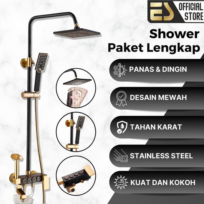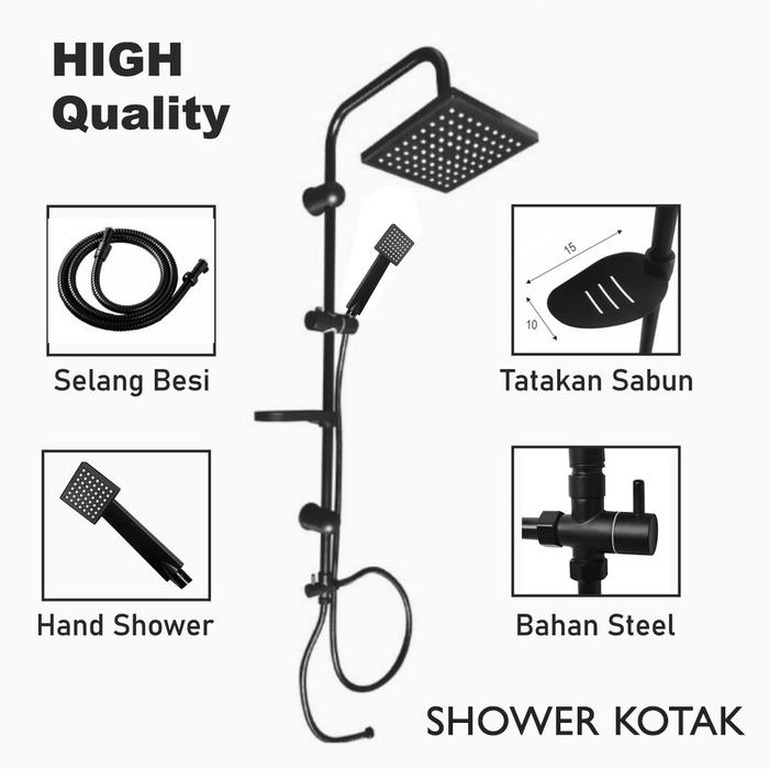 [CUCI GUDANG] ES Shower Mandi Dengan Tiang Set Komplit Full Set Minimalis Wall Mounted Shower Black Bulat Kotak Dengan