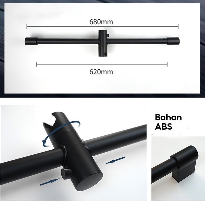 1SET Shower Lengkap Hitam Balok ABS & Stainles SJ-69 Set Selang Tiang - HITAM