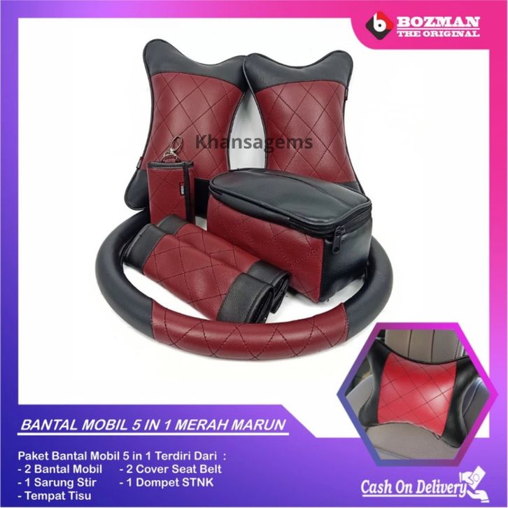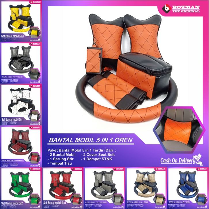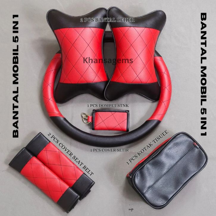 Flash Sale Bantal Mobil Set Bantal Mobil 5 in 1 Premium Bantal Leher Cover Stir Seatbelt Tempat Tisu Free kantong STNK