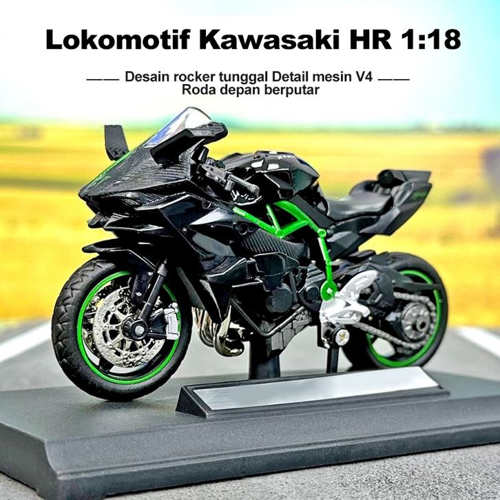 1:18 Miniatur Diecast Motor Kawasaki H2R Emulasi PeM0Delan / Motor Mainan Anak Miniatur