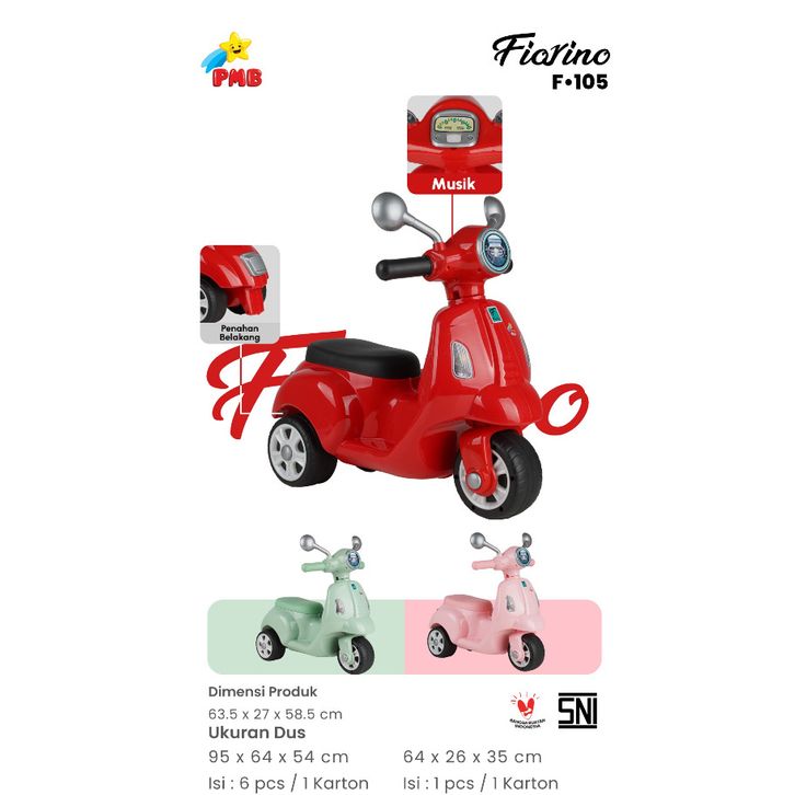 Mainan Motor anak PMB F-105 F 105 F105 FIORINO VESPA Ride on Motoran mainan anak