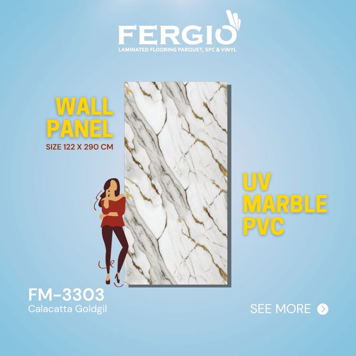 panel dinding terlaris murah FERGIO UV Marble 2D Wall Panel Stone - FM3303 CALCATTA 9oldGIL | Tebal 3mm, Ukuran 122cm x