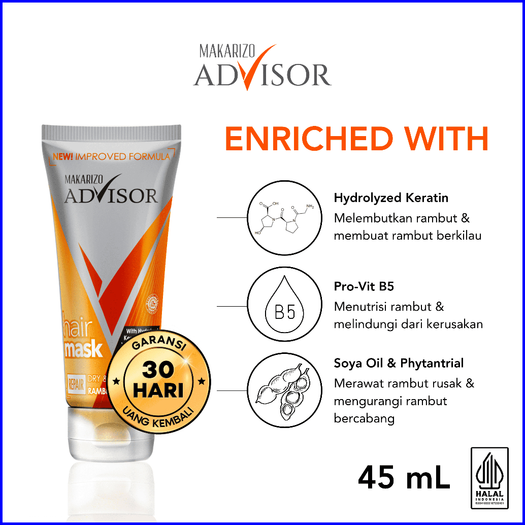 Makarizo Advisor Hair Repair Mask 45ml - Masker Rambut Hair Mask Rambut Lembut