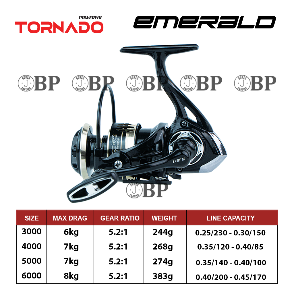 TORNADO Reel Pancing Spinning EMERALD 5+1BB 3000 - 6000 CFG Body Extra Ringan dan Kuat Power Handle Reel Pancing Kolam d
