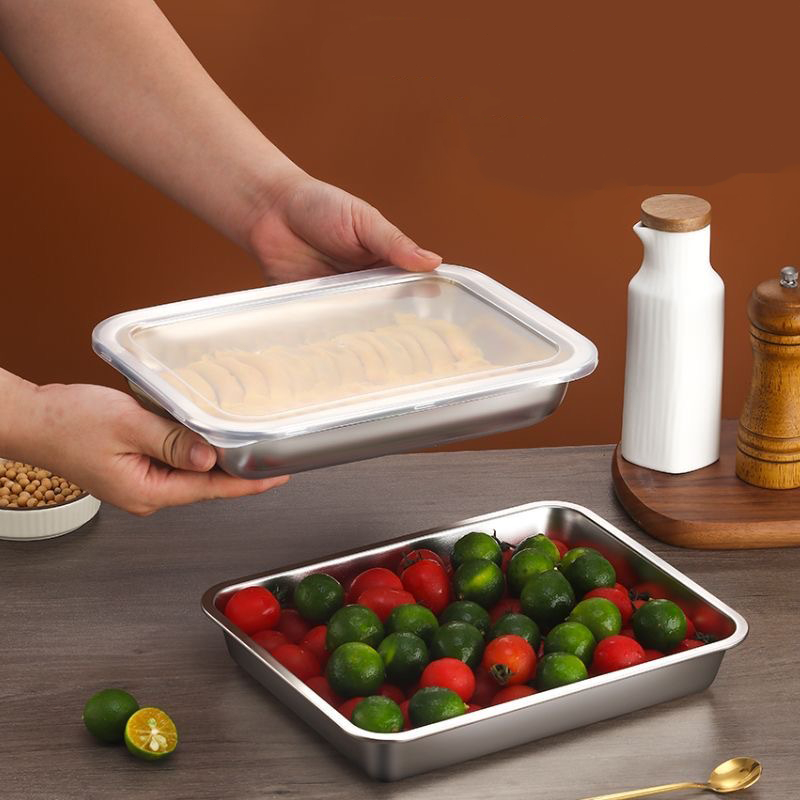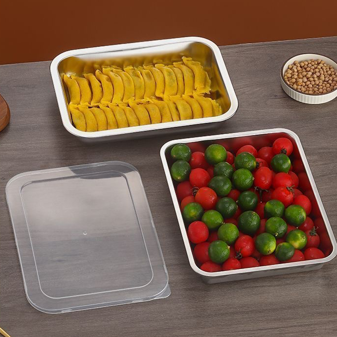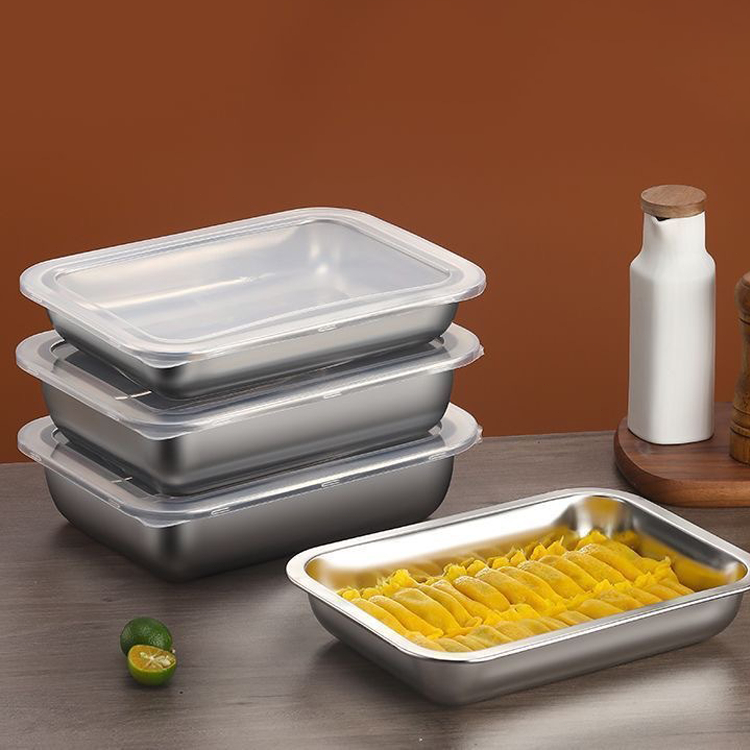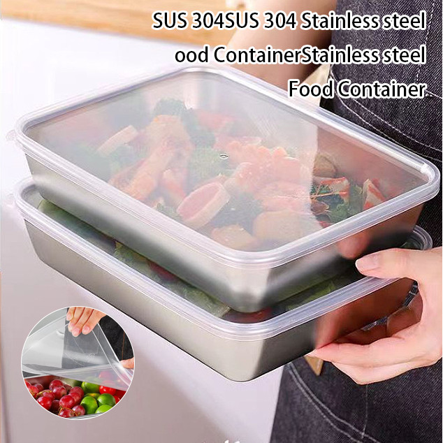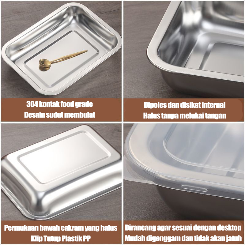 5PCS Kontainer Makanan Sayuran Tempat Wadah Makanan Food Box Stainless Food Storage Box With Cover Kotak Kulkas Stainles