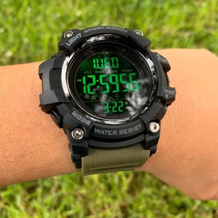 FLASH SALE JAM TANGAN PRIA DIGITAL SKMEI 1384 ARMY GREEN WATER RESISTANT 50M