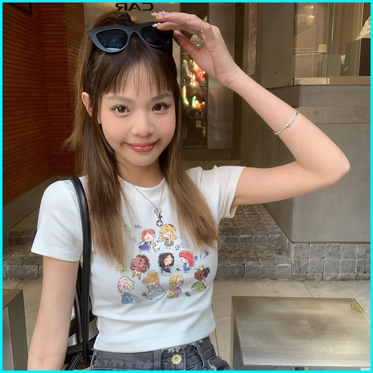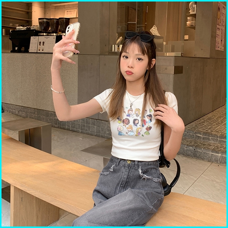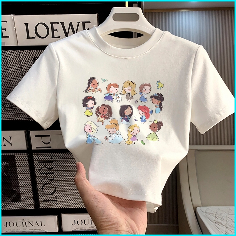 Misco T-shirt Crop Top Lengan Pendek Kaos Wanita Crop Top Korea Retro Cartoon Princess Kaos Crop Wanita Kekinian Baju At