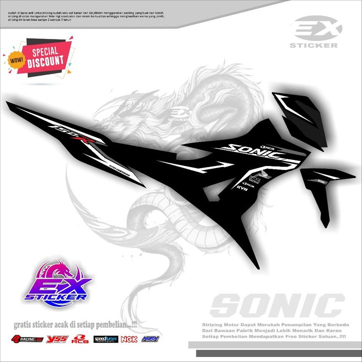 Promo Striping Motor Striping Sonic 150R – Stiker Motor Honda Racing Look Merah Hitam | Kode 01