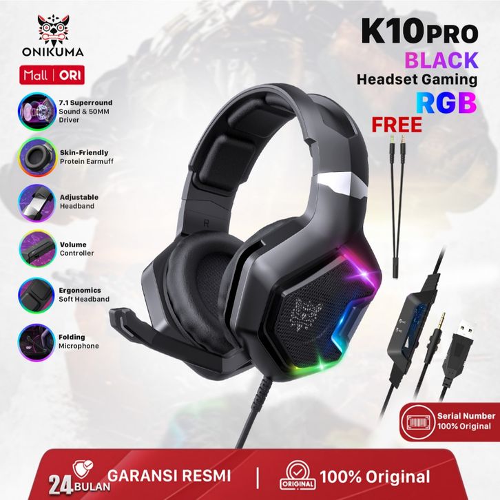 ORIGINAL ONIKUMA K10 PRO Headset Gaming Rgb Light Original - Headphone Gaming Berwarna Bisa Untuk HP egask