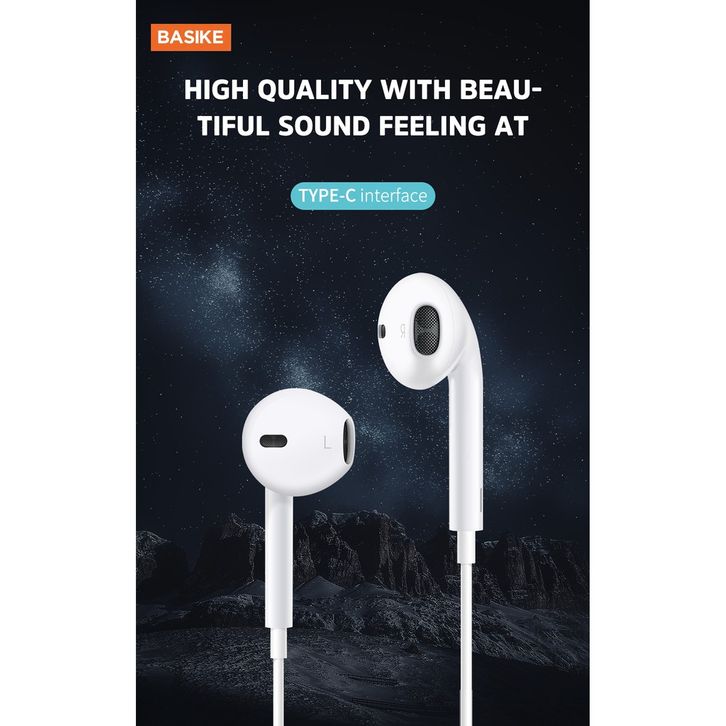 ORIGINAL (HOT)Basike Headset Kabel Gaming Type C Music In Ear Handsfree for iPhone Xiaomi Samsung uhasd